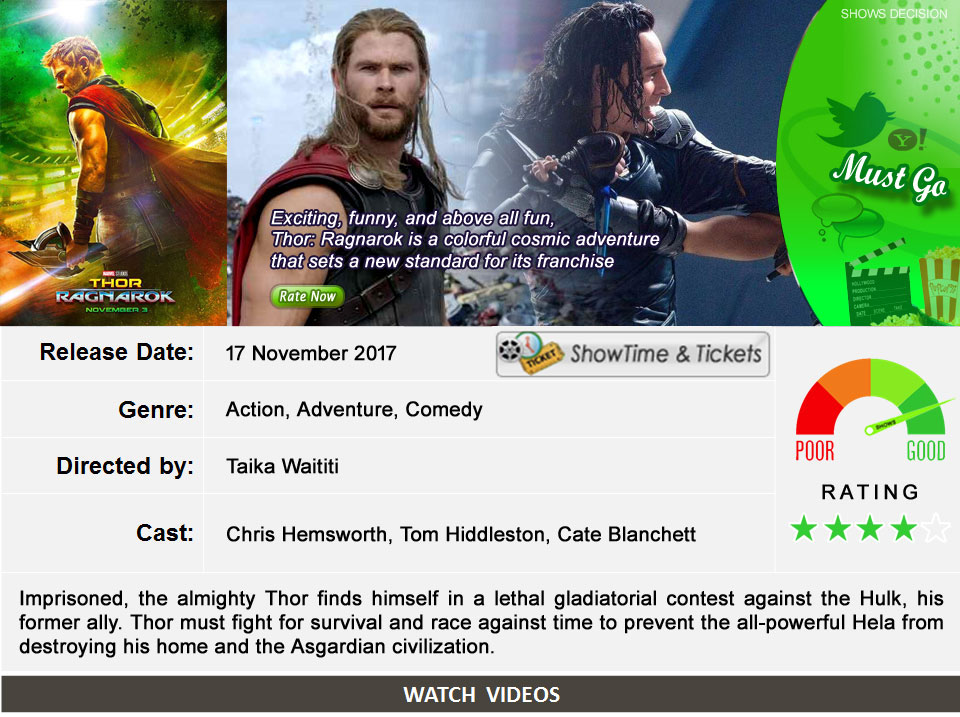 Thor: Ragnarok What’s your Reaction? +1 0 +1 0 +1 0 +1 0 +1 0 Facebook Twitter Email Imprisoned, the almighty Thor finds himself in a lethal gladiatorial contest against the Hulk, his former ally. Thor must fight for survival and race against time to prevent the all-powerful Hela from destroying his home and the Asgardian civilization. [instagram-feed id=”1135475679″ showheader=”false” ]