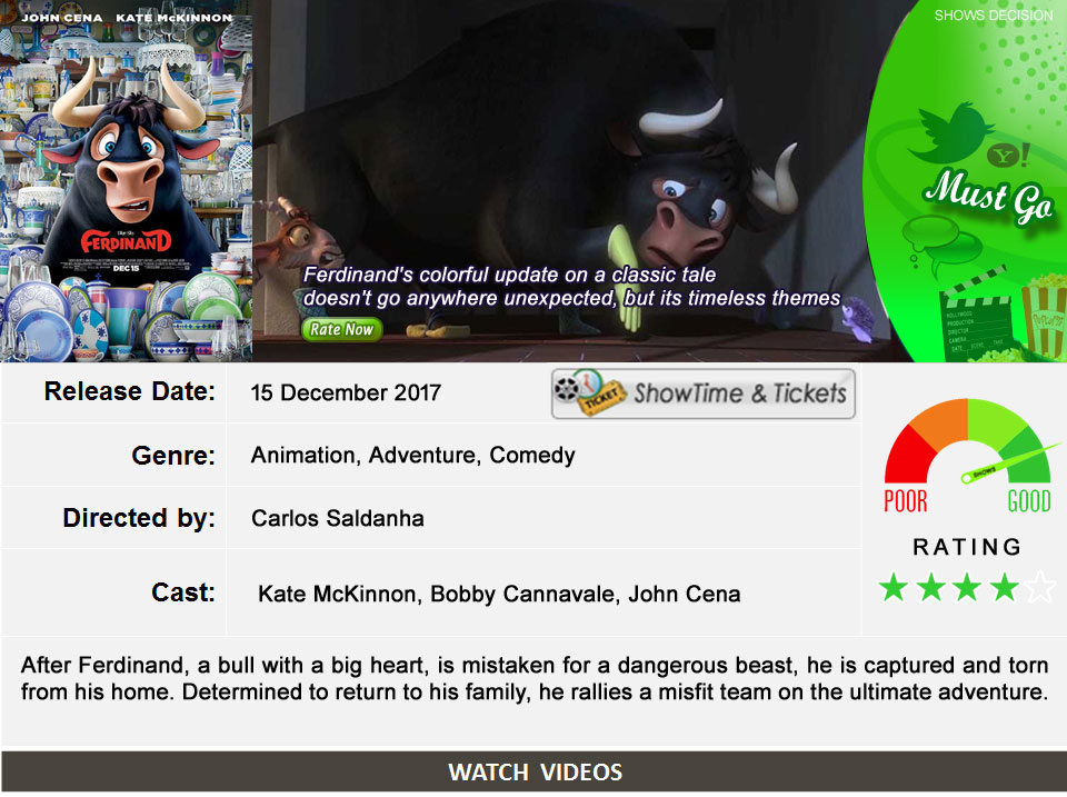 Ferdinand What’s your Reaction? +1 0 +1 0 +1 0 +1 0 +1 0 Facebook Twitter Email After Ferdinand, a bull with a big heart, is mistaken for a dangerous beast, he is captured and torn from his home. Determined to return to his family, he rallies a misfit team on the ultimate adventure. [instagram-feed id=”4118300792″ showheader=”false” ]