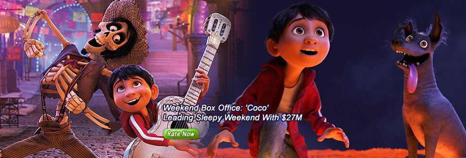 Weekend Box Office: 'Coco' Leading Sleepy Weekend With $27M What’s your Reaction? +1 0 +1 0 +1 0 +1 0 +1 0 Facebook Twitter Email The post-Thanksgiving box office is historically sleepy, and this year is no exception. There isn’t one new movie opening nationwide as Hollywood studios prepare for the Christmas onslaught, meaning Disney and Pixar’s Coco is easily winning the weekend with a projected $27 million-$28 million as it jumps the $100-million mark domestically. Coco, earning 6.3 million on Friday, looks to fall a mere 46 percent in in its second weekend. Among other holdovers, Justice League, Wonder and Murder on the Orient Express are staying high up on the chart. [instagram-feed id=”3148889709″ showheader=”false” ]