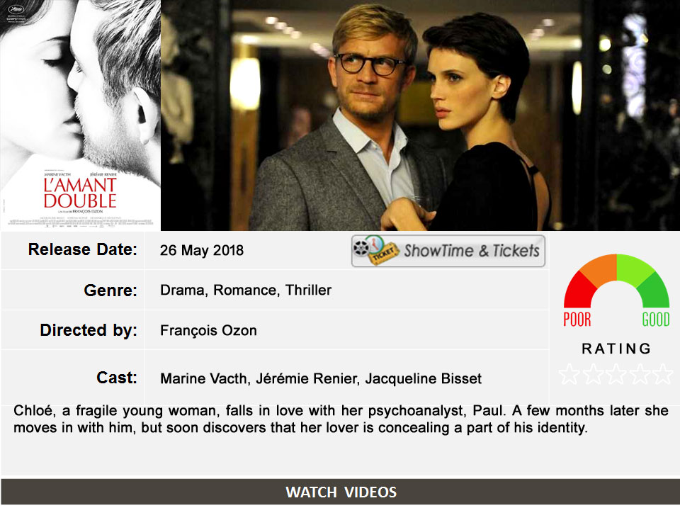 Double Lover What’s your Reaction? +1 0 +1 0 +1 0 +1 0 +1 0 Facebook Twitter Email Chloé, a fragile young woman, falls in love with her psychoanalyst, Paul. A few months later she moves in with him, but soon discovers that her lover is concealing a part of his identity. Chloé, a fragile young woman, falls in love with her psychoanalyst, Paul. A few months later she moves in with him, but soon discovers that her lover is concealing a part of his identity. [instagram-feed id=”4296834087″ showheader=”false” ]