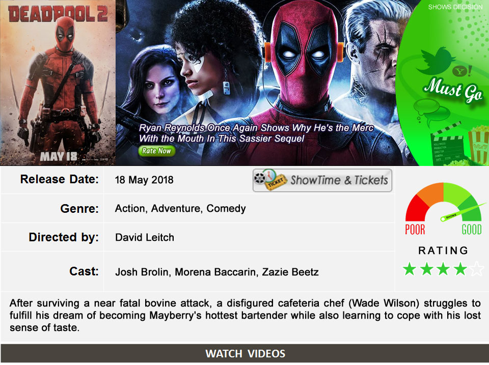 Deadpool 2 What’s your Reaction? +1 0 +1 0 +1 0 +1 0 +1 0 Facebook Twitter Email After surviving a near fatal bovine attack, a disfigured cafeteria chef (Wade Wilson) struggles to fulfill his dream of becoming Mayberry’s hottest bartender while also learning to cope with his lost sense of taste. Searching to regain his spice for life, as well as a flux capacitor, Wade must battle ninjas, the Yakuza, and a pack of sexually aggressive canines, as he journeys around the world to discover the importance of family, friendship, and flavor – finding a new taste for adventure and earning the coveted coffee mug title of World’s Best Lover. [instagram-feed id=”1502294092″ showheader=”false” ]