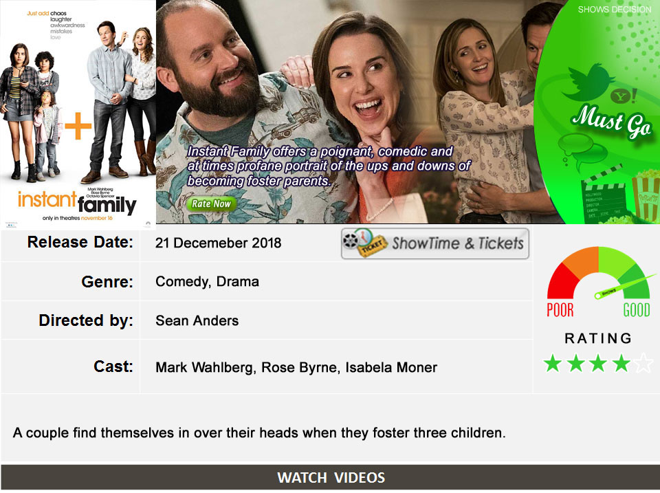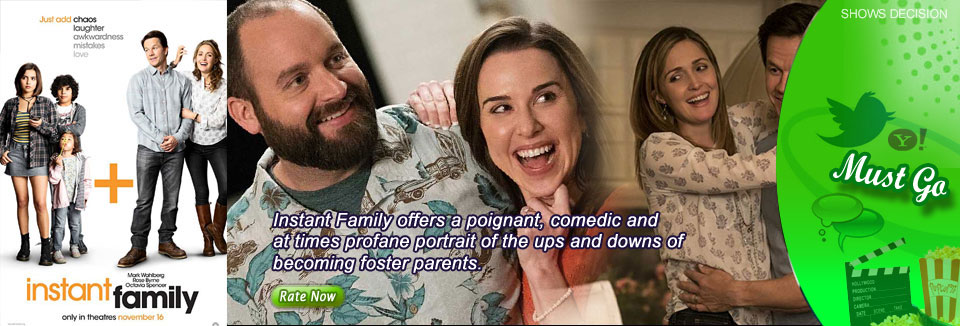 Instant Family What’s your Reaction? +1 0 +1 0 +1 0 +1 0 +1 0 Facebook Twitter Email A couple find themselves in over their heads when they foster three children. Instant Family is a 2018 American comedy-drama film starring Mark Wahlberg and Rose Byrne as two parents who adopt three young children; Isabela Moner, Gustavo Quiroz, Julianna Gamiz, Margo Martindale, Julie Hagerty, Tig Notaro, and Octavia Spencer also star. It is directed by Sean Anders, who wrote the screenplay with Jazohn Morris, based in-part on Anders’s own experiences. @instantfamily Tweets by instantfamily