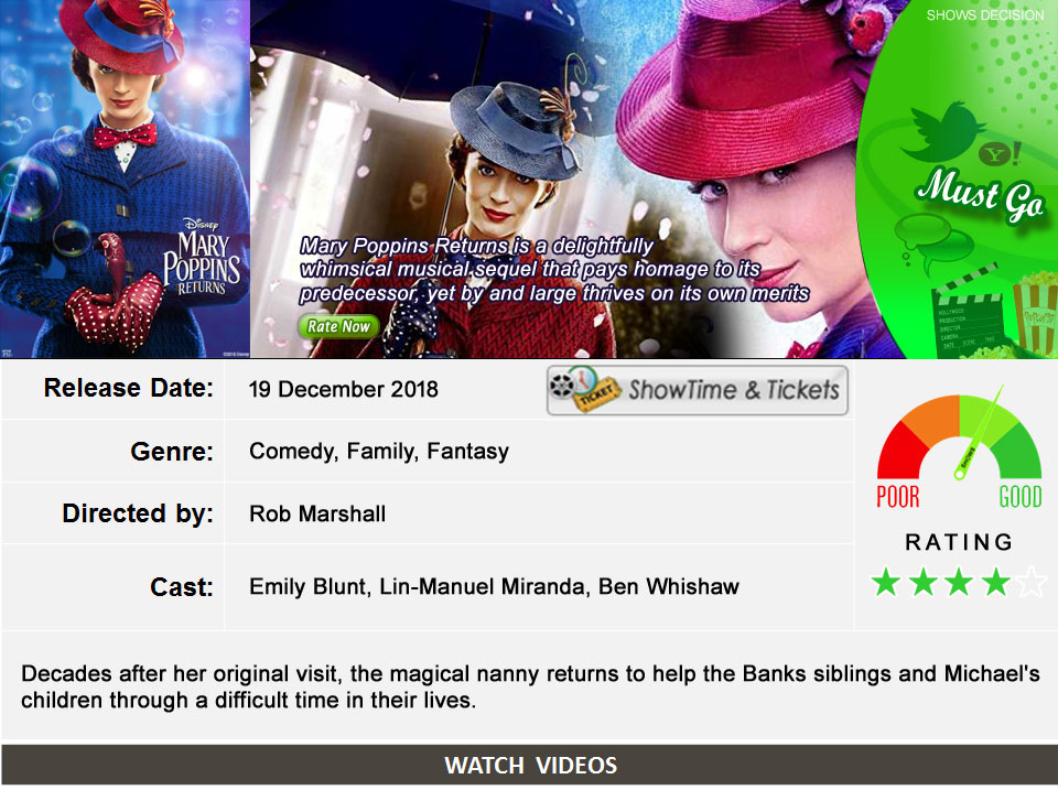 Mary Poppins Returns What’s your Reaction? +1 0 +1 0 +1 0 +1 0 +1 0 Facebook Twitter Email Decades after her original visit, the magical nanny returns to help the Banks siblings and Michael’s children through a difficult time in their lives. @marypoppinsreturns Tweets by MaryPoppins2018