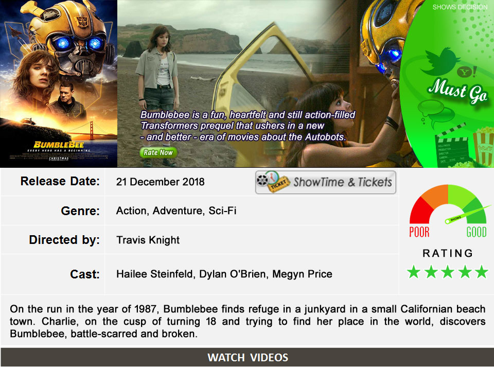 Bumblebee What’s your Reaction? +1 0 +1 0 +1 0 +1 0 +1 0 Facebook Twitter Email On the run in the year of 1987, Bumblebee finds refuge in a junkyard in a small Californian beach town. Charlie, on the cusp of turning 18 and trying to find her place in the world, discovers Bumblebee, battle-scarred and broken. @bumblebee.movie Tweets by bumblebeemovie