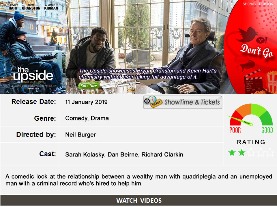 The Upside What’s your Reaction? +1 0 +1 0 +1 0 +1 0 +1 0 Facebook Twitter Email A comedic look at the relationship between a wealthy man with quadriplegia and an unemployed man with a criminal record who’s hired to help him. @kevinhart4real Tweets by KevinHart4real