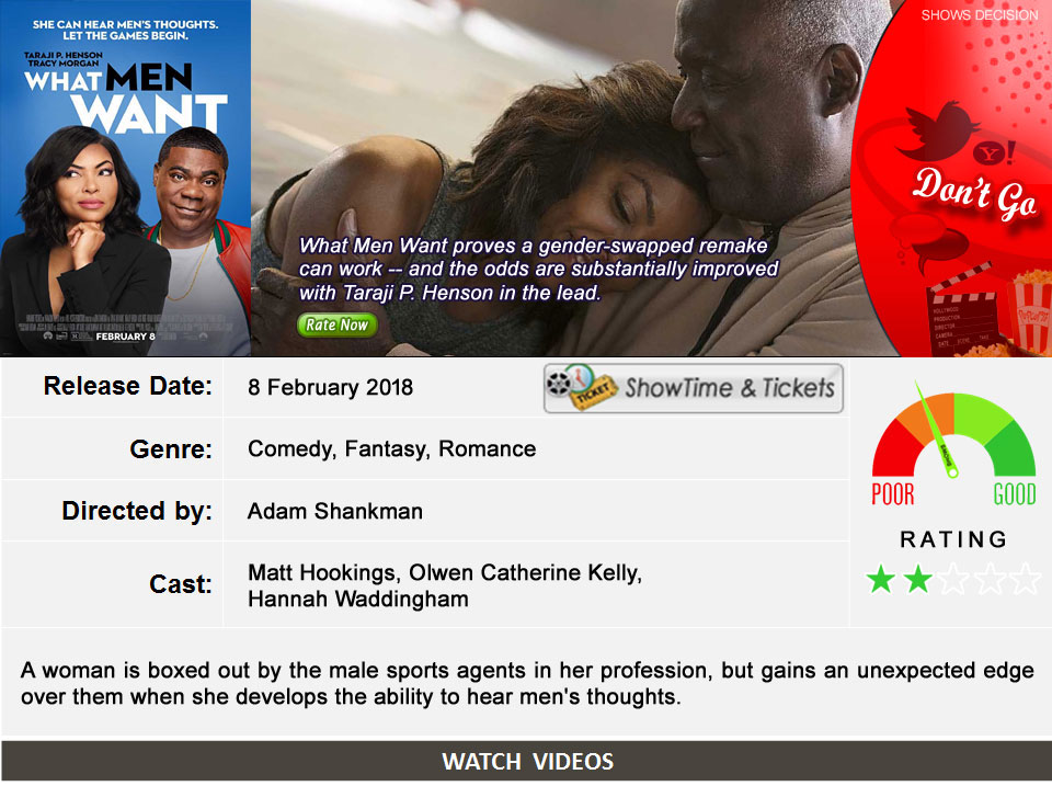 What Men Want What’s your Reaction? +1 0 +1 0 +1 0 +1 0 +1 0 Facebook Twitter Email A woman is boxed out by the male sports agents in her profession, but gains an unexpected edge over them when she develops the ability to hear men’s thoughts. @tarajiphenson Tweets by TherealTaraji