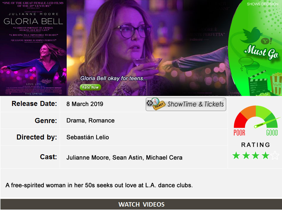 Gloria Bell What’s your Reaction? +1 0 +1 0 +1 0 +1 0 +1 0 Facebook Twitter Email A free-spirited divorcee spends her nights on the dance floor, joyfully letting loose at clubs around Los Angeles. She soon finds herself thrust into an unexpected new romance, filled with the joys of budding love and the complications of dating. @juliannemoore Tweets by _juliannemoore