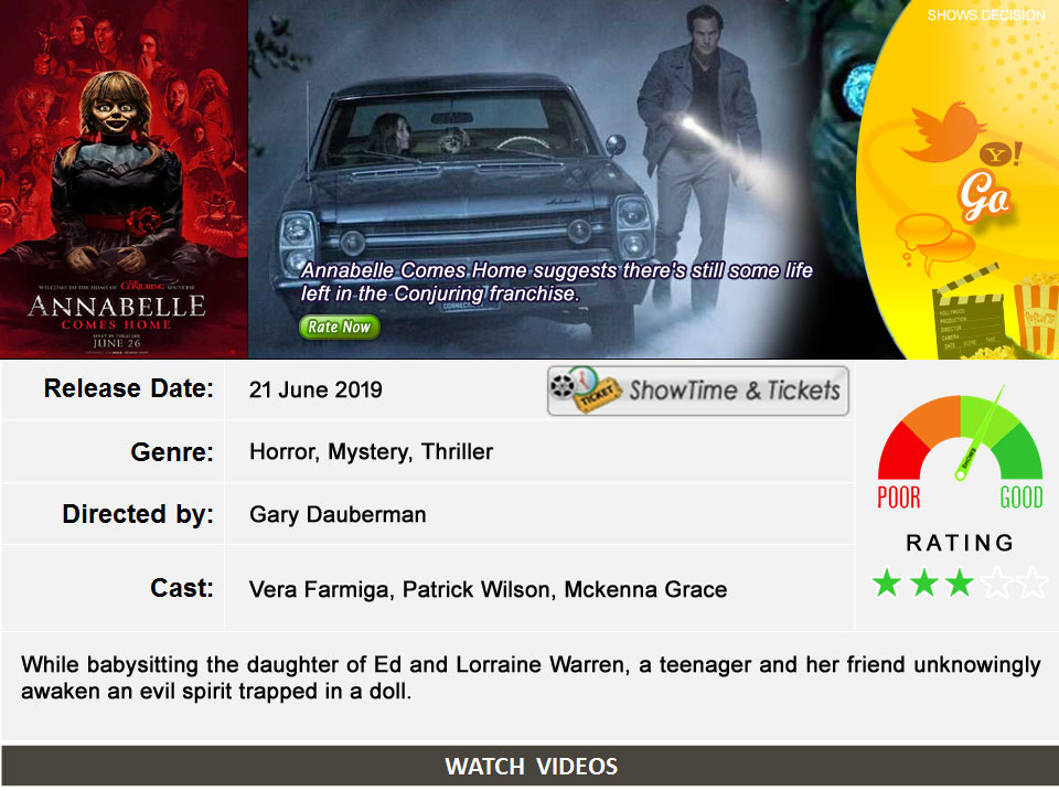 Annabelle Comes Home What’s your Reaction? +1 0 +1 0 +1 0 +1 0 +1 0 Facebook Twitter Email While babysitting the daughter of Ed and Lorraine Warren, a teenager and her friend unknowingly awaken an evil spirit trapped in a doll. While babysitting the daughter of Ed and Lorraine Warren, a teenager and her friend unknowingly awaken an evil spirit trapped in a doll. @annabellemovie Tweets by annabellemovie