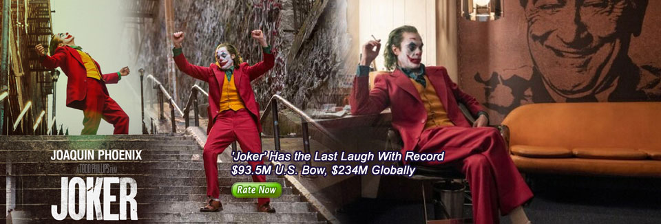 Box Office: 'Joker' Has the Last Laugh With Record $96M U.S. Bow, $247M Globally What’s your Reaction? +1 0 +1 0 +1 0 +1 0 +1 0 Facebook Twitter Email The nihilistic R-rated pic exceeded expectations despite heightened security at domestic theaters; it also raked in $151 million overseas. Todd Phillips’ Joker had the last laugh in its box office debut, earning a huge $96 million domestically from 4,374 theaters to set a new opening record for the month of October despite heightened security at cinemas across the U.S. That’s up from Sunday’s estimated $93.5 million, which was likewise a record. And international numbers came in notably higher than Sunday estimates, by more than $10 million. The dark, R-rated supervillain movie starring Joaquin Phoenix as a mentally ill misfit turned homicidal maniac did even more business overseas, raking in $151 million from more than 70 markets for a global start of $247 million (it doesn’t yet have a release date in China). Both figures likewise set new benchmarks for the month. In North America, Joker bested last year’s Venom, which started off with $80.3 million domestically. To boot, the controversial origin pic danced to the best three-day bow of all time for an R-rated title, as well as boasting the fifth-biggest weekend launch of 2019 to date. It is also Warner’ biggest debut in two years. Joker — far from an ordinary superhero pic but an origin story laced with realism — has sparked widespread headlines and concern for its nihilistic themes and violence, prompting cinemas and police departments to ramp up security and remind patrons that face paint, masks and toy weapons aren’t allowed. Theaters are also checking IDs and informing guests that the film’s rating is a “hard R,” and that anyone under 17 must be accompanied by a parent or adult when buying a ticket. Tweets by Joaquin Phoenix