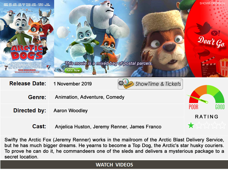 Arctic Dogs What’s your Reaction? +1 1 +1 0 +1 0 +1 0 +1 0 Facebook Twitter Email Swifty the Arctic Fox (Jeremy Renner) works in the mailroom of the Arctic Blast Delivery Service, but he has much bigger dreams. He yearns to become a Top Dog, the Arctic’s star husky couriers. To prove he can do it, he commandeers one of the sleds and delivers a mysterious package to a secret location. Once there, he stumbles on a hidden fortress overseen by the nefarious Otto Von Walrus (John Cleese). The blubbery evil genius commands an army of oddly polite puffin henchmen. Swifty discovers Otto Von Walrus’ villainous plan to drill beneath the snow-packed surface to unleash masses of ancient gas to melt the Arctic and become the world’s supreme ruler. To stop this sinister scheme, Swifty enlists the help of his friends: PB (Alec Baldwin), a neurotic polar bear, Lemmy (James Franco), a scatterbrained albatross, Jade Fox (Heidi Klum), a brainy engineer, Leopold (Omar Sy) and Bertha (Heidi Klum), two conspiracy theorist otters and Magda (Anjelica Huston), his curmudgeonly boss. Tweets by arcticdogsmovie