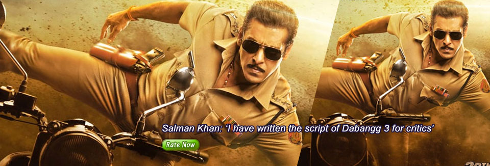 Salman Khan: ‘I have written the script of Dabangg 3 for critics’ What’s your Reaction? +1 0 +1 0 +1 0 +1 0 +1 0 Facebook Twitter Email Salman Khan unveiled the trailer of his much-anticipated film Dabangg 3 on Wednesday and the actor is releasing the film in Hindi, Tamil, Telugu and Kannada. Arbaaz Khan, who is producing and acting in the film, revealed at the trailer launch that all the creative decisions have been taken by Salman. When asked about the film having a nationwide release in four different languages, Salman said, “I have written the script. This film is for the critics ki wah kya story likhi hai. If we get a beating it will not only be in Mumbai but also in Chennai and Bangalore. Telugu, Tamil and Kannada desh bhar mein pitengey. Maarengey to desh bhar mein maarengey.” “When the critics give a bad rating the film turns out to be a blockbuster,” added Sonakshi but Salman shut her up saying that only he can say all this, not her. Directed by Prabhudheva, Dabangg 3 is slated to release on December 20. Tweets by BeingSalmanKhan