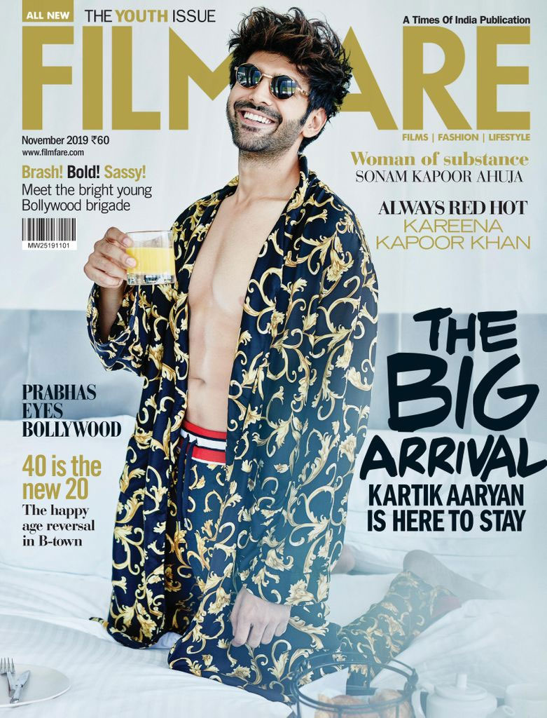 Kartik Aaryan unveils the cover page of Filmfare magazine's November issue What’s your Reaction? +1 0 +1 0 +1 0 +1 0 +1 0 Facebook Twitter Email Kartik Aaryan has impressed everyone with his acting skills and now he has several films lined up ahead. The actor is currently busy promoting his upcoming film ‘Pati Patni Aur Woh’ co-starring Ananya Panday and Bhumi Pednekar. The actor often gets snapped on various occasions in the city. And today, he was clicked by the paparazzi as he unveiled the cover page of Filmfare magazine’s November issue. For the event, he opted a green t-shirt with a brownish-grey jacket over it and black pants. He was all smiles for the cameras at the event. On the other hand, the actor looked super cool in a printed shirt teamed with a matching pajama on the cover page of the magazine. He can be seen holding a glass of juice while in a bed and was all smiles for the photo. Tweets by TheAaryanKartik