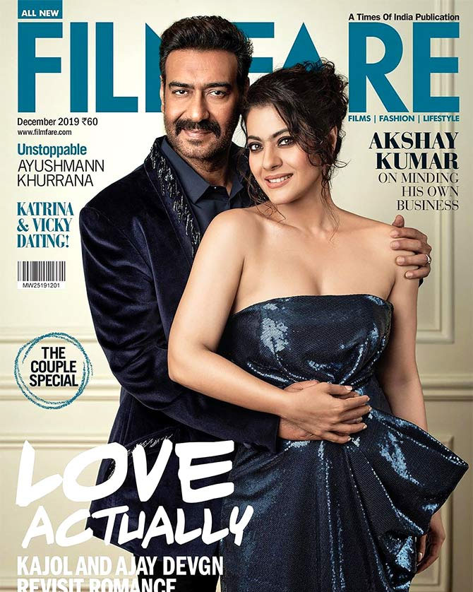 Can you feel the magic between Ajay Devgn and Kajol? What’s your Reaction? +1 0 +1 0 +1 0 +1 0 +1 0 Facebook Twitter Email Ajay Devgn and Kajol will totally command your attention as they set the temperature soaring on the cover of Filmfare’s December 2019 issue. Dressed in their party best, they colour coordinated their looks in blue. While Kajol upped the glam quotient in a shimmering blue strapless gown, Ajay suited up in a blue tuxedo. Titled ‘Love Actually’, the cover revisits their romance and their chemistry is really cute. Kajol took to Instagram to share inside pics from the cover shoot and the pics have already been liked by over 5 lakh followers. Tweets by itsKajolD Style to wear