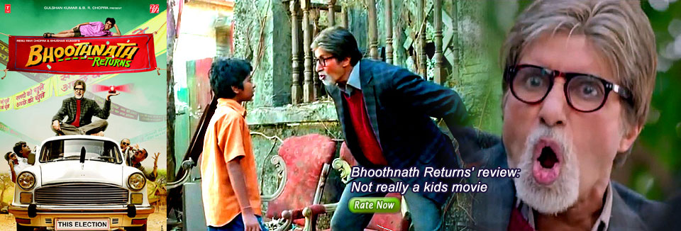 Bhoothnath Returns What’s your Reaction? +1 0 +1 0 +1 0 +1 0 +1 0 Facebook Twitter Email Bhoothnath Returns takes Bhoothnath’s story forward. As he returns to ‘Bhoot World’ he is greeted with taunts and condemnation from other ghosts for bringing disrepute to the ghost-community for getting bullied by a kid on Earth. Post the humiliation, Bhoothnath decides to redeem himself and come back to scare a bunch of kids. This div will be replaced var s1 = new SWFObject(‘http://www.youtubereloaded.com/embed/player.swf’,’ply’,’400′,’470′,’9′,’#’); s1.addParam(‘allowfullscreen’,’true’); s1.addParam(‘allowscriptaccess’,’always’); s1.addParam(‘wmode’,’opaque’); s1.addParam(‘flashvars’,’file=http%3A%2F%2Fgdata.youtube.com%2Ffeeds%2Fapi%2Fvideos%3Fvq%3Dbhoothnath+returns%26max-results%3D10&playlist=bottom&frontcolor=cccccc&lightcolor=66cc00&skin=http://www.youtubereloaded.com/embed/skin1.swf&backcolor=111111&playlistsize=200&autostart=true’); s1.write(‘YouTubeReloadedPlayer’); Release Date: 11 April, 2014 Genre: Drama, Romance Directed by: Syed Ahmad Afzal Cast:Amitabh Bachchan, Boman Irani, Anurag Kashyap, Usha Jadhav, Parth Bhalerao Shows Movie Decision: Shows [rating:3.0] … 40% Positive based on 6000 tweets … Yahoo Critics – Grade – ☢Home » Uncategorized » ⤍ More