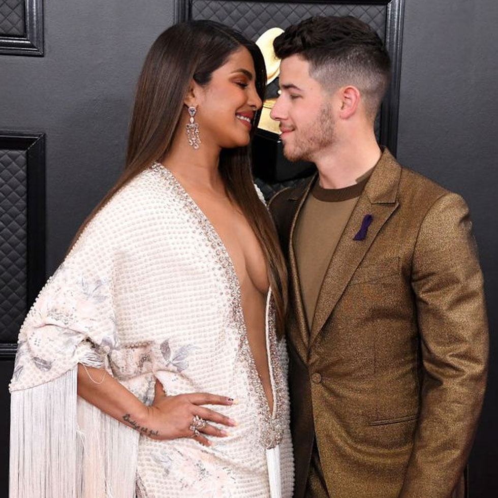 Priyanka Chopra and Nick Jonas Glow on the 2020 Grammys Red Carpet What’s your Reaction? +1 0 +1 0 +1 0 +1 0 +1 0 Facebook Twitter Email Priyanka Chopra and Nick Jonas are bringing a whole lot of golden glam to the 2020 Grammys red carpet. Chopra first gave fans an exclusive sneak peek of her and her husband’s red-carpet ensembles with a coordinating couple pic shared on her Instagram. The actress wore an ivory, bell-sleeved Ralph & Russo gown, complete with a seductive, navel-grazing neckline. The number also featured draping back fringe and a mermaid-style hem adorned with a faint pastel floral detailing. She paired her look with sleek highlighted strands, a subtle side part, and a warm, bronzed smoky eye. “This guy. #Grammys2020,” Chopra captioned the pic alongside her husband. Jonas proudly posed next to his wife while donning a monochrome metallic-gold tuxedo with a matching bronze-hued T-shirt and shimmering dress shoes. Jonas is nominated with the Jonas Brothers for Best Pop/Group Performance for their summer hit, “Sucker.” The duo seemed to be all over each other on the red carpet, and they didn’t hide it in front of the cameras. Videos Tweets by RecordingAcad Style to wear
