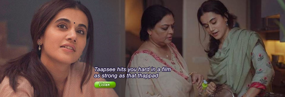 Taapsee hits you hard in a film as strong as that thappad What’s your Reaction? +1 0 +1 0 +1 0 +1 0 +1 0 Facebook Twitter Email Anubhav Sinha brings a seemingly simple story with layers and layers of surprise that will make you rethink yourself. And, he has excellent support from the entire cast, says our Thappad movie review. Amrita (Taapsee Pannu) confines herself in a corner of the house, contemplating on what just happened. Hours before this, the same house was bustling with guests dancing to popular Punjabi tracks. And all that maddening noise just drowned under the deafening silence of a slap. She storms into the living room, takes the pallu around her waist and secures it at the side, picks her hair up and fastens in a tight, messy bun, and starts to noisily move the furniture in the room back to their original place. The camera pans close and we see beads of sweat forming on her face in the dim light. The only sound in that scene is of the sweet jingling of the bangles and the harsh push-and-pull of the sofa. Somethings can go back to how they were, somethings cannot. Thappad is a simple story of an upper-middle-class couple based in Delhi. The wife is questioning if it is okay for her husband to slap her, even if it is a one-off case. But Thappad doesn’t leave it to just a question. At the core of the story is a human being’s ego, gender irrelevant here. Anubhav Sinha lends a certain subtlety to the film that a film like this needed. And given how lost subtlety is in Hindi cinema (Bollywood, essentially), Thappad hits you like that very slap that snapped Taapsee’s Amrita back into consciousness. The start-credits of the film are particularly memorable. Weaved almost like the last episode of Modern Love, Anubhav weaves stories of different women – the mother, the mother-in-law, the maid, the neighbour, the neighbour’s 13-year-old daughter, the brother’s girlfriend and Amrita – and their idea of love at different ages and stages of their life. And then, all these stories converge into one house, where Amrita is brewing her first cup of tea of the morning with a sprig of lemongrass cut from her kitchen window and a generous pinch of crushed ginger. Videos Tweets by taapsee Style to wear