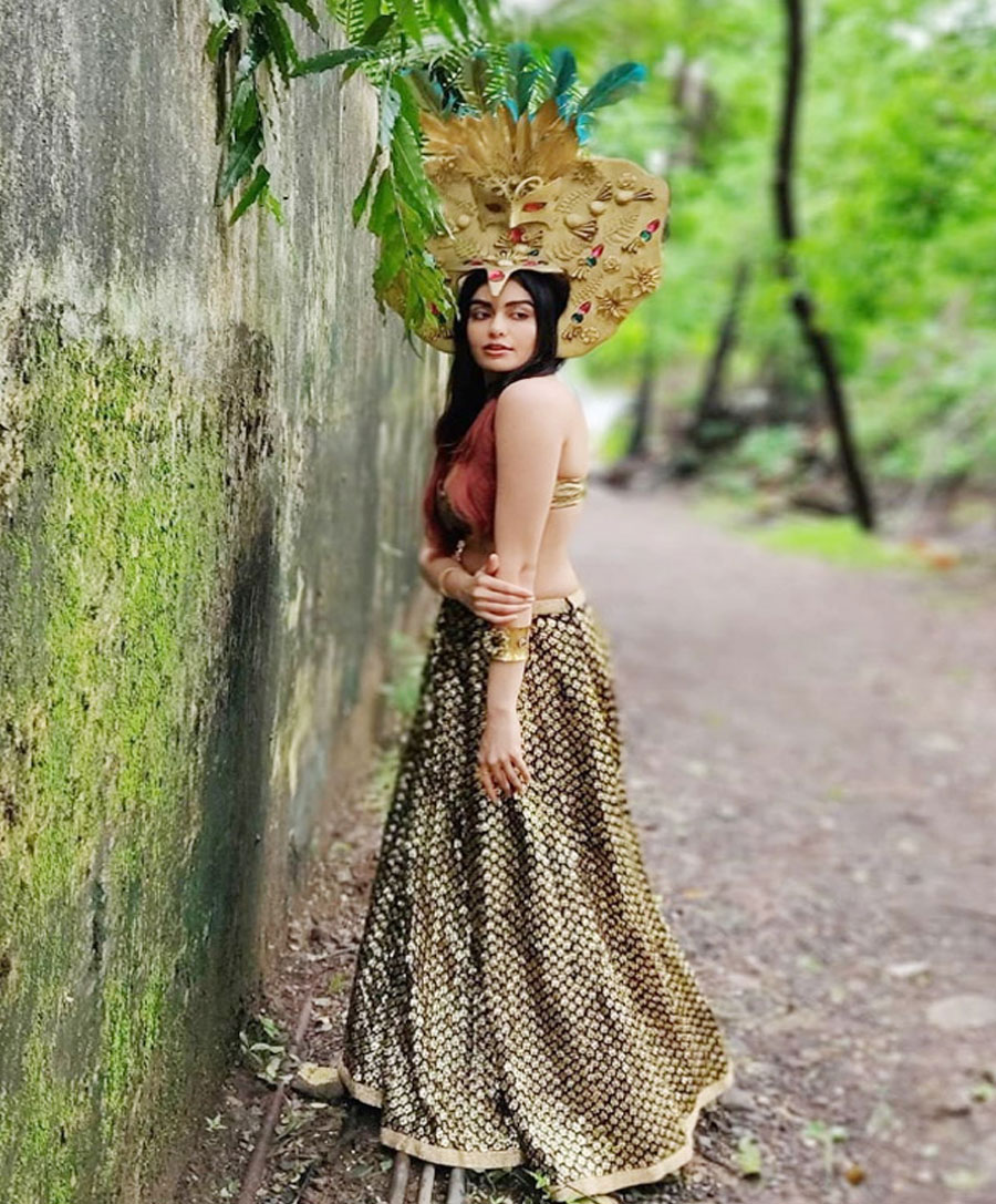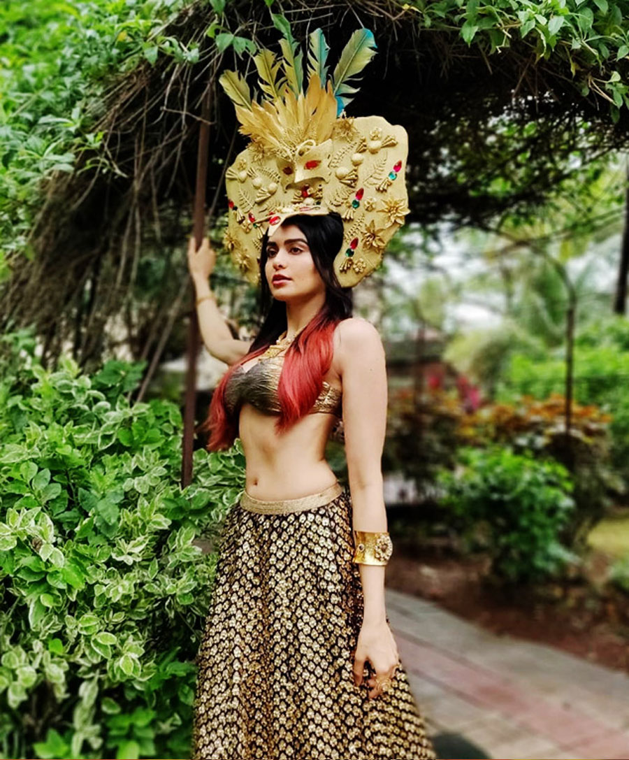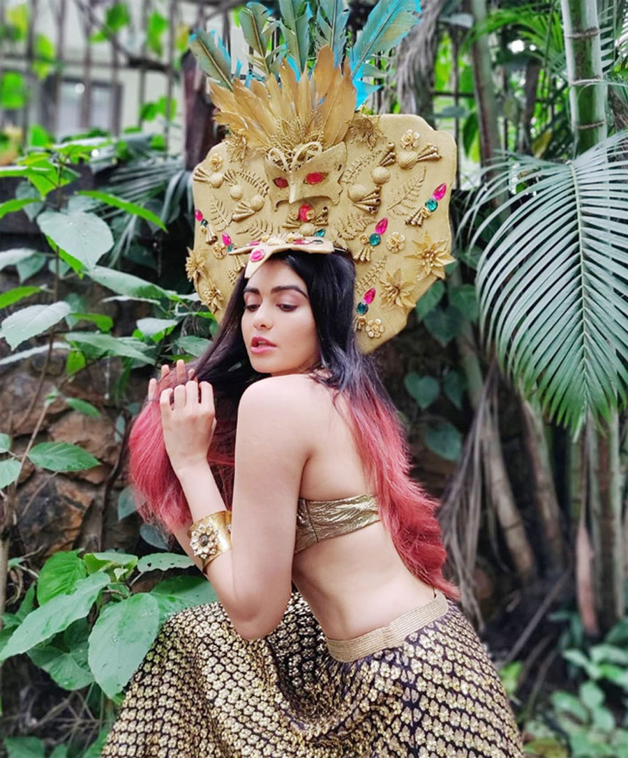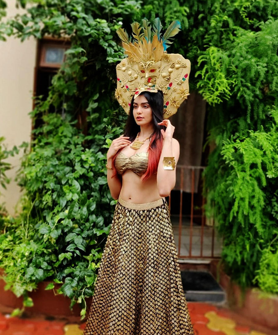 Adah Sharma Flaunts Her Perfect Curves in Golden Lehenga And Huge Egyptian Mask on Head What’s your Reaction? +1 0 +1 0 +1 0 +1 0 +1 0 Facebook Twitter Email Adah Sharma flaunts her perfect abs in backless golden and blue lehenga andEgyptian mask on her head. With red-coloured hair, golden bracelet and subtle makeup, she looks absolutely gorgeous. Adah was also seen in Bypass Road. She will be next seen in Man to Man and Telegu film Kalki. Related Videos Tweets by adah_sharma Style to wear