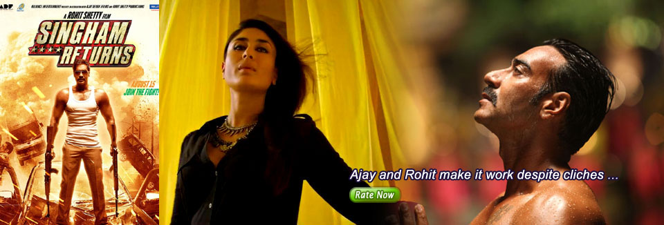 Singham Returns What’s your Reaction? +1 0 +1 0 +1 0 +1 0 +1 0 Facebook Twitter Email Singham Returns is an upcoming Indian action film directed by Rohit Shetty and produced by Reliance Entertainment. This div will be replaced var s1 = new SWFObject(‘http://www.youtubereloaded.com/embed/player.swf’,’ply’,’400′,’470′,’9′,’#’); s1.addParam(‘allowfullscreen’,’true’); s1.addParam(‘allowscriptaccess’,’always’); s1.addParam(‘wmode’,’opaque’); s1.addParam(‘flashvars’,’file=http%3A%2F%2Fgdata.youtube.com%2Ffeeds%2Fapi%2Fvideos%3Fvq%3DSingham+Returns+trailors%26max-results%3D10&playlist=bottom&frontcolor=cccccc&lightcolor=66cc00&skin=http://www.youtubereloaded.com/embed/skin1.swf&backcolor=111111&playlistsize=200&autostart=true’); s1.write(‘YouTubeReloadedPlayer’); Release Date: August 15, 2014 Genre: Comedy Directed by: Rohit Shetty Cast:Ajay Devgn, Kareena Kapoor Shows [rating:3.5] … 60% Positive based on 4000 tweets … Yahoo Critics – Grade –