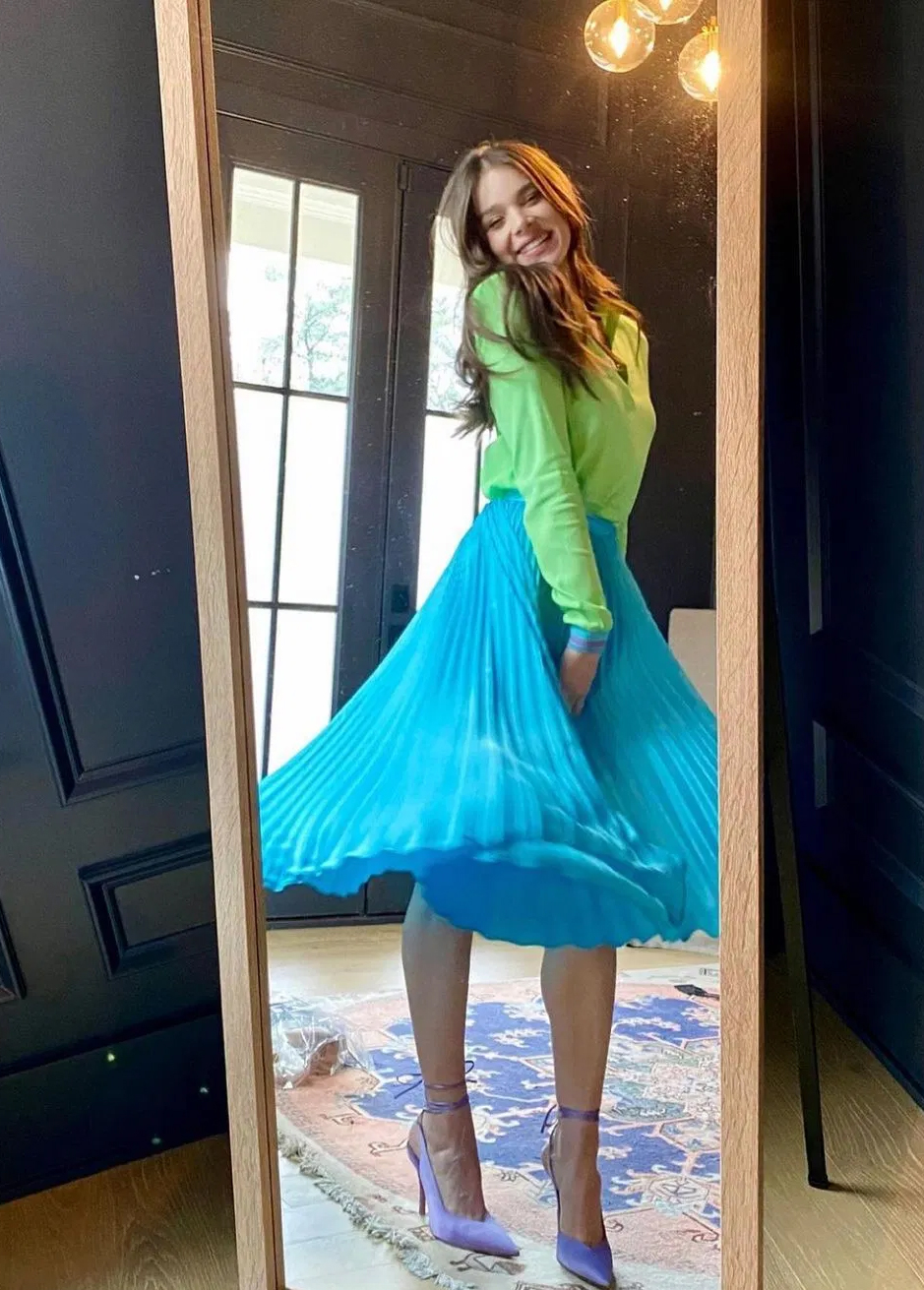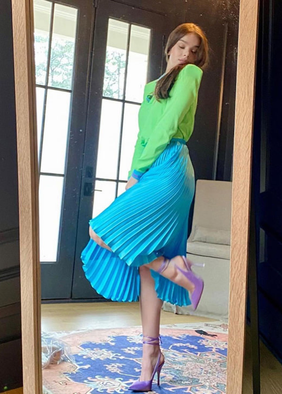 Hailee Steinfeld Promotes ‘Dickinson’ In Versace What’s your Reaction? +1 0 +1 0 +1 0 +1 0 +1 0 Facebook Twitter Email Hailee Steinfeld was in a very joyous mood as she captioned her latest Instagram post, “new episode of dickinson this friday on apple tv + ✨” There may be 66 days until the official first day of Spring, but Hailee Steinfeld opted to spring way forward in this Versace Resort 2021 dual-colour blouse and pleated skirt combo. The singer-actress has been heavily leaning towards a more sultry style for some time, but this takes me back to her early days when the outlook was more wholesome. Wholesome and Versace? These are not usually two words that are in the same post, but I adore the change of pace and vibrant energy of this look. Not every Versace moment needs to be a skin-tight, medusa moment. I think I need her The Attico ‘Venus’ lilac heels to go with everything I’m unlikely to be able to wear this Spring, if my Prime Minister doesn’t give lockdown 3.0 an end date. Related Videos Tweets by HaileeSteinfeld