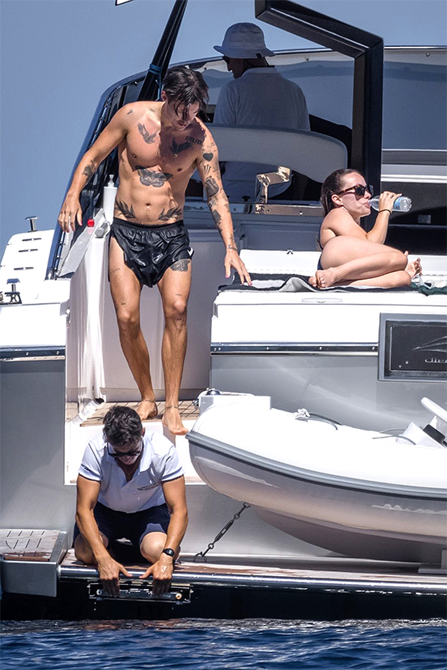 Harry Styles Goes Shirtless & Kisses OliviaWilde During Romantic Italian Getaway What’s your Reaction? +1 0 +1 1 +1 0 +1 0 +1 0 Facebook Twitter Email These steamy new photos show a shirtless Harry Styles and bikini-clad Olivia Wilde living it up in Italy and engaging in hot PDA. Newly released photos of Harry Styles and Olivia Wilde will make you want to take a cold shower. Just days after a number of images showed the couple kissing on a yacht off the Island of Giglio near Tuscany, new pictures, which you can see below, show them doing the same. But this time around, they have less clothes on. Harry, 27, went shirtless and showed off his abs in a tiny pair of Nike gym shorts with super high slits on each side, while Olivia, 37, wore a navy blue bikini as the duo laid out to catch some rays, do some reading and lock lips. Olivia and Harry later engaged in some sexy snorkeling in the Tyrrhenian Sea before they took off their goggles and cuddled in the water. They even snuck in a few more kisses before getting back on the boat. Related Videos Tweets by Harry_Styles ☢Home » News » ⤍ More