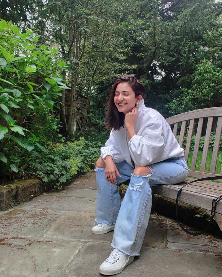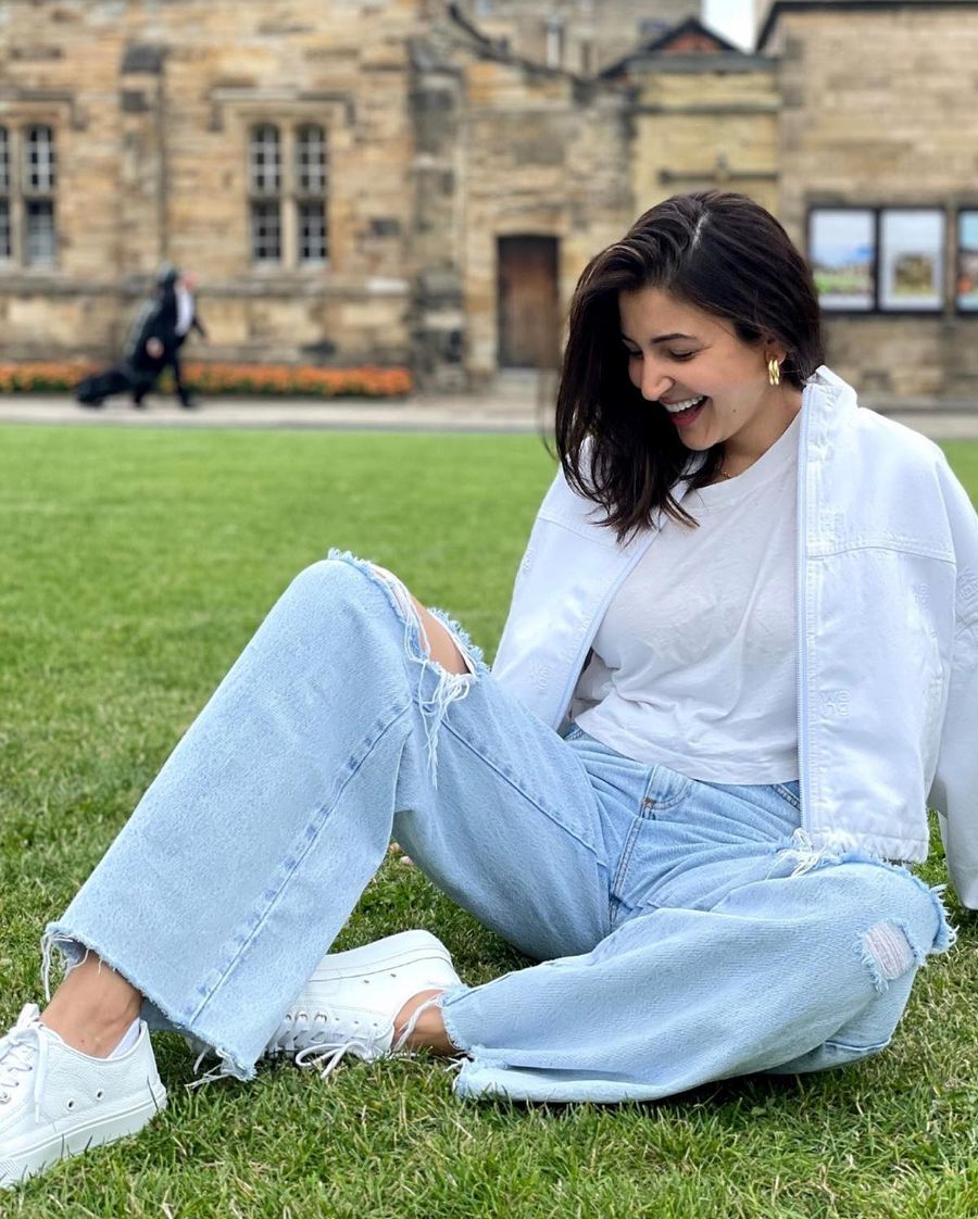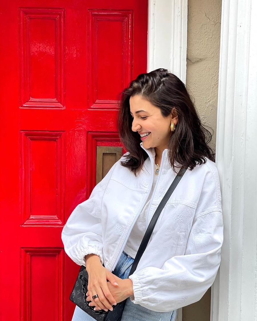 Anushka Sharma shows how to rock flared denims What’s your Reaction? +1 0 +1 0 +1 0 +1 0 +1 0 Facebook Twitter Email Anushka Sharma posted a series of pictures on her Instagram handle which were clicked by Athiya Shetty. The pictures have made our day with pretty smile of Anushka Sharma and her casual and comfy outfit. The actress got the pictures clicked on her day out in London where she can be seen wearing a white jacket and a white crop top with a pair of wide legged denim jeans. She accessorised the outfit with a pair of white sneakers, black statement sling bag and golden hoop earrings. She looks extremely adorable in this casual and comfy outfit. Anushka’s white jacket was designed by the designer Alexander Wang and her black sling bag is from the luxury brand Louis Vuitton. The actress captioned the post as, “10 thousand steps and some nice photos on the way.” She also mentioned Athiya Shetty in her caption. The actress is in UK with her husband, Virat Kohli for his upcoming cricket matches with England. Anushka Sharma had recently posted another set of pictures with Virat Kohli and wrote, “Was just casually prancing around town. Running a hand through my hair. A fan spotted me. I obliged for a picture. He seemed happy. Anything for my fans!” Related Videos Tweets by AnushkaSharma