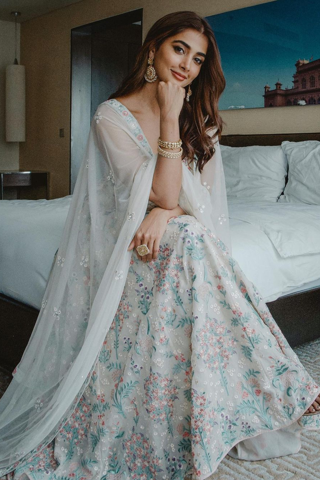 Pooja Hegde’s All-White Style for Beast Promotions is Unmissable What’s your Reaction? +1 0 +1 0 +1 0 +1 0 +1 0 Facebook Twitter Email Actress Pooja Hegde has always left us impressed with her sartorial choices and in her latest Instagram post she shows us how an all white attire can be styled. The 31-year-old was styled by celebrity stylist Tanya Gharvi for her latest look as she promotes her upcoming film Beast starring Thalapathy Vijay. The actress was spotted in an all-white crop top-like shirt by LETOIT. Pooja’s blouse priced at approximately Rs 25K featured long and extended laces which she tied around her waist. The blouse came with a dipped v-neck in the front and also featured extra padded sleeves that ran the arm length to the wrist. The exaggerated collar and cuff added that touch of style to Pooja’s latest look. The actress paired the crop-top-esque shirt with a matching pencil skirt. Pooja wore the Leana lacing skirt from the British fashion brand. The long full-bodied below-the-knee skirt featured a diagonal slit joined by lacing for a stylish fit. Pooja’s skirt draped gracefully below the knee with just the right amount of flounce The skirt retails at approximately Rs 36,443. Pooja accessorised her look with a pair of gold hoops and layered necklaces. The actress opted for a pair of silver pumps from Christian Louboutin to amp up her style quotient. For her hair, the actress tied up her locks in a graceful bun with strands of curled hair framing her face. Sharing her look on the social media platform, Pooja added in the caption, “Serving you a scoop of vanilla on a sunny day.” Related Videos Tweets by AlwaysRamCharan