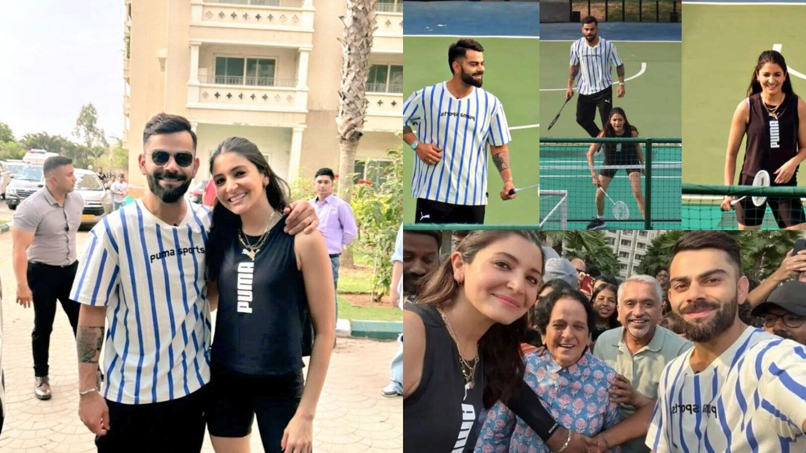 Virat Kohli-Anushka Sharma surprise residents of a society in Bengaluru as they play badminton with them-VIDEO What’s your Reaction? +1 0 +1 0 +1 0 +1 0 +1 0 Facebook Twitter Email Virat Kohli and Anushka Sharma stepped out in Bengaluru on Monday, and were seen showing off their badminton skills as they played with the residents of a society. Virat Kohli and Anushka Sharma have been making the most of their time together in Bengaluru. A few days ago, a video of Virat Kohli blowing kisses at Anushka Sharma during an IPL match went viral on Instagram. The next day, the couple was seen enjoying a lunch date together with their families at the famous heritage restaurant Central Tiffin Room in Bengaluru. They were mobbed by their fans as they exited the eatery. Now, Anushka and Virat stepped out for brand promotion on Monday, and were spotted playing badminton together. Related Videos Tweets by AnushkaSharma