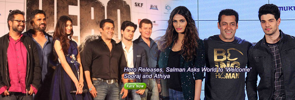 Hero Releases, Salman Asks World to 'Welcome' Sooraj and Athiya What’s your Reaction? +1 0 +1 0 +1 0 +1 0 +1 0 Facebook Twitter Email Superstar Salman Khan has asked audiences to support Sooraj Pancholi and Athiya Shetty’s Hero. Hero is a remake of Subhash Ghai’s 1983 film of the same name. The film marks the debut of Sooraj and Athiya in Bollywood and has been produced by Salman. Related articles Shah Rukh Khan Is Sure Salman Khan’s ‘Kids’ Will Make Their Fathers Proud ‘Hero’ music concert Salman Khan to autograph tickets for fans to promote Athiya Shetty-Sooraj Pancholi starrer ‘Hero’ Hero (2015) Movie Review: Boring Drivel