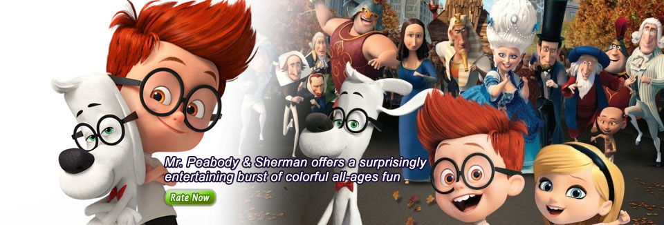 Mr. Peabody & Sherman What’s your Reaction? +1 0 +1 0 +1 0 +1 0 +1 0 Facebook Twitter Email Mr. Peabody, the most accomplished dog in the world, and his mischievous boy Sherman, use their time machine – The WABAC – to go on the most outrageous adventures known to man or dog. But when Sherman takes The WABAC out for a joyride to impress his friend Penny, they accidentally rip a hole in the universe, wreaking havoc on the most important events in world history. Before they forever alter the past, present and future, Mr. Peabody must come to their rescue, ultimately facing the most daunting challenge of any era: figuring out how to be a parent. Together, the time traveling trio will make their mark on history. var s1 = new SWFObject(‘http://www.youtubereloaded.com/embed/player.swf’,’ply’,’400′,’470′,’9′,’#’); s1.addParam(‘allowfullscreen’,’true’); s1.addParam(‘allowscriptaccess’,’always’); s1.addParam(‘wmode’,’opaque’); s1.addParam(‘flashvars’,’file=http%3A%2F%2Fgdata.youtube.com%2Ffeeds%2Fapi%2Fvideos%3Fvq%3DMR.+PEABODY+%26+SHERMAN%26max-results%3D10&playlist=bottom&frontcolor=cccccc&lightcolor=66cc00&skin=http://www.youtubereloaded.com/embed/skin1.swf&backcolor=111111&playlistsize=200&autostart=true’); s1.write(‘YouTubeReloadedPlayer’); Release Date: March 7, 2014 Genre: Animation Directed by: Rob Minkoff Cast: Ty Burrell, Max Charles, Ariel Winter, Allison Janney, Stephen Colbert Shows [rating:4.0] Shows Movie Decision: … 77% Positive based on 6000 tweets … Yahoo Critics – Grade –